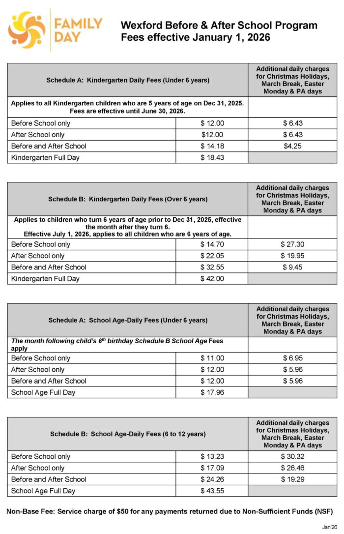 For information on a child care fee subsidy, please contact the City of Toronto Children’s Services Department